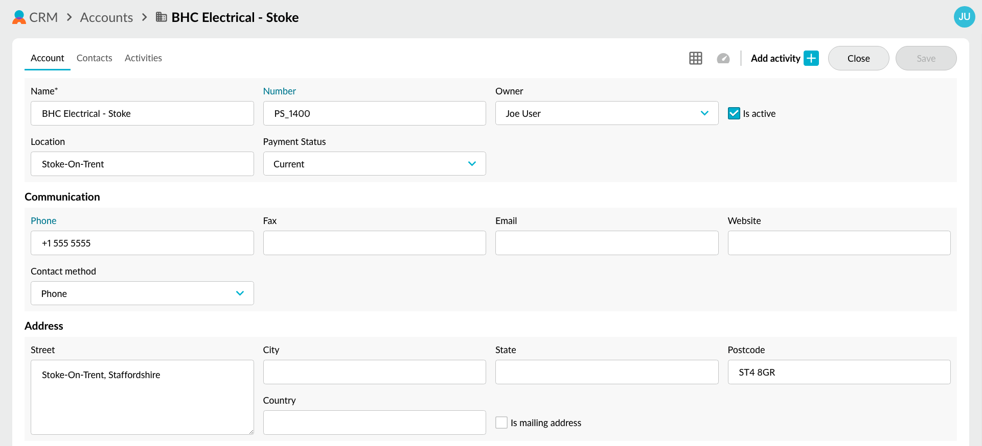 * **Owner**: The CRM user who owns the account.
