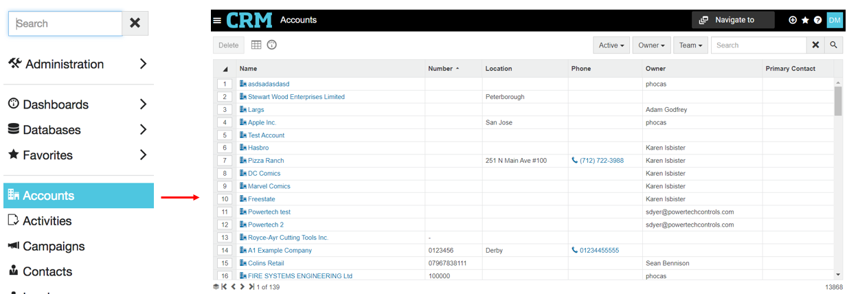 To find the account you require, type your search term into the box, such as a company name, location, or contact name, and any matching results will instantly be displayed.