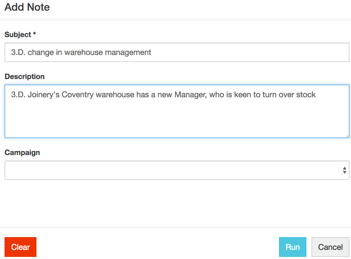 Enter a Subject (mandatory). You can then choose assign it to a campaign, and provide a description.