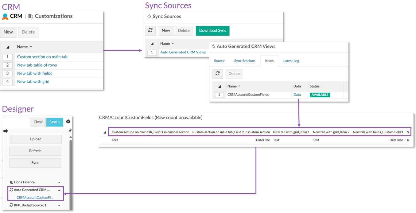 The CRM mapping tool works in a similar way to how you map data to a database in the Designer, therefore, the information on this page is summarized. See the Designer pages for more information.