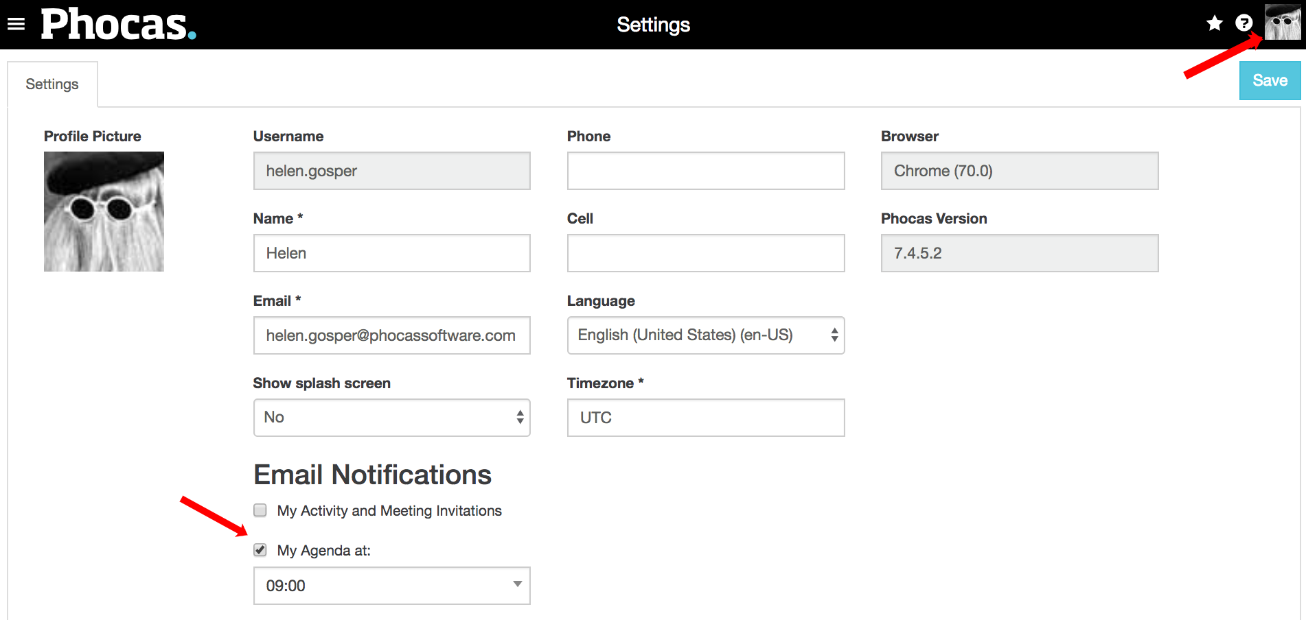 Ensure your email address and time zone are correct.