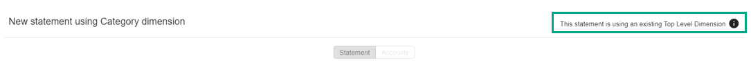 When a financial statement is created, the statement's accounts are mapped to a dimension using the Top Level Dimension setting. This can be either an existing dimension (recommended), such as Category or Classification, or a new custom dimension.