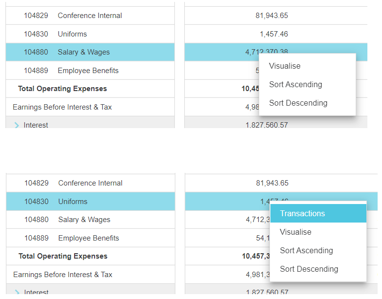 In the following example, a restriction is applied to the Salary & Wages account, so users can access transactions for all other accounts (such as Uniforms) except for the Salary & Wages account.