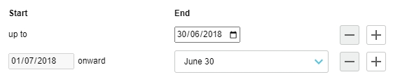 (Optional) Add another year end date. You can add as many as required. Click the Add button, then specify the date range and select the year end date (as above).