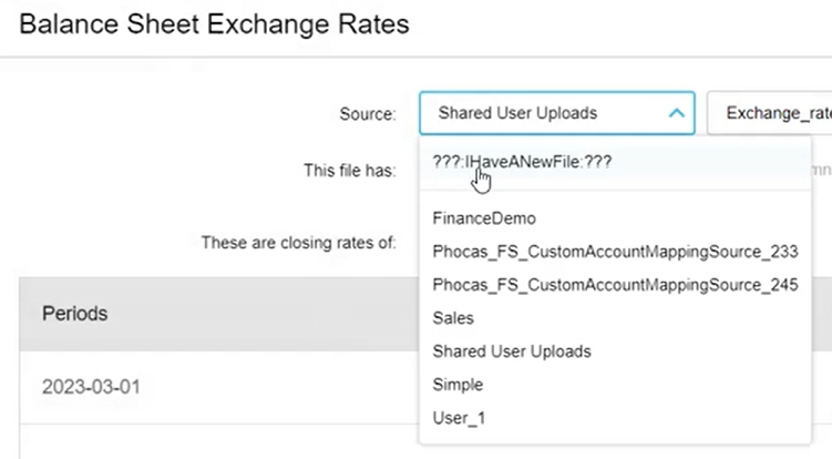 In the Balance Sheet Exchange Rates window, select the I have a new file option from the Source list.