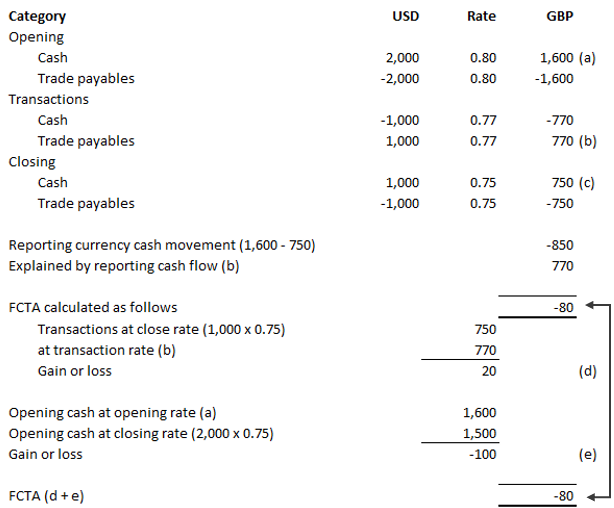 The Foreign Currency Translation Adjustment (FCTA) is calculated as follows:
