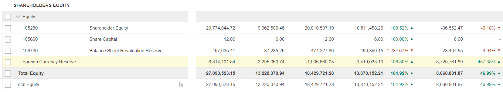 Scroll down to the Equity group row and expand it to view the foreign currency translation reserve values. See the How it works section above to learn about how the local currency conversion is handled.