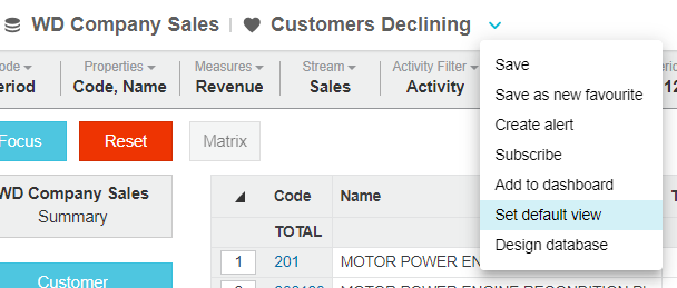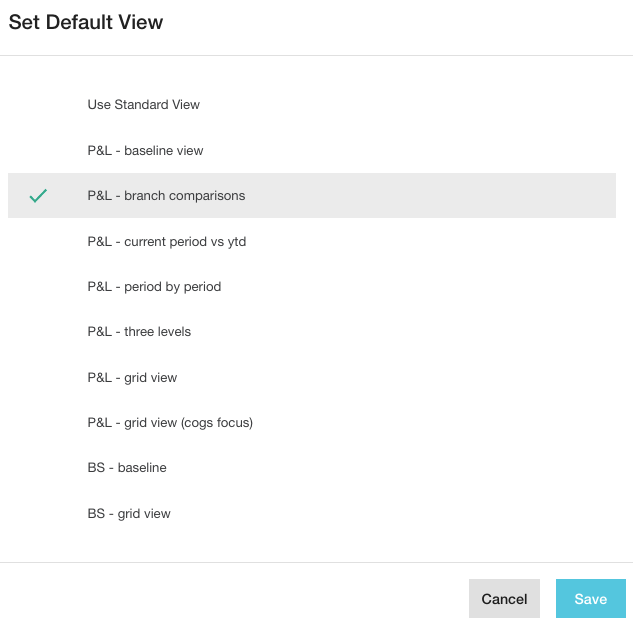 When you open a financial database, the first financial statement you see and the way it looks is determined by the default view, which initially is a ‘standard view’ that is set up by the person in your organization who has permission to manage custom statements.