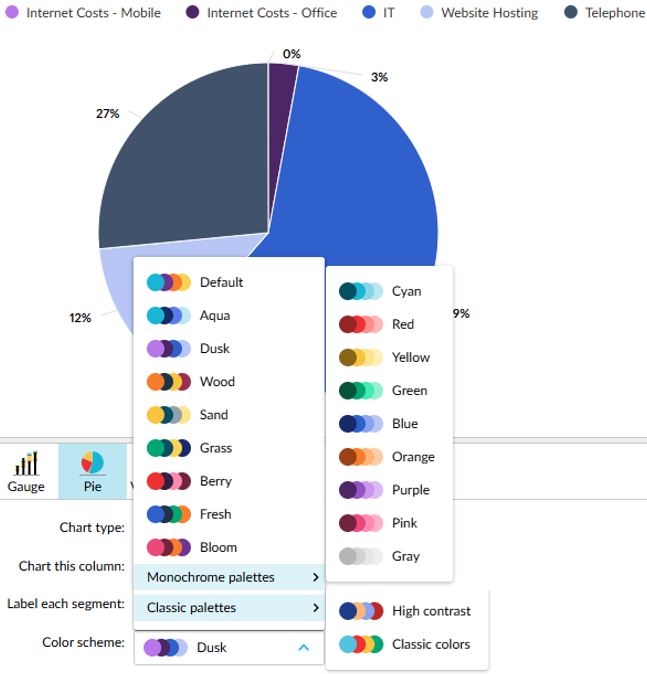 We added new color palettes to charts and updated the classic palette. Any existing charts on your dashboards will not change.