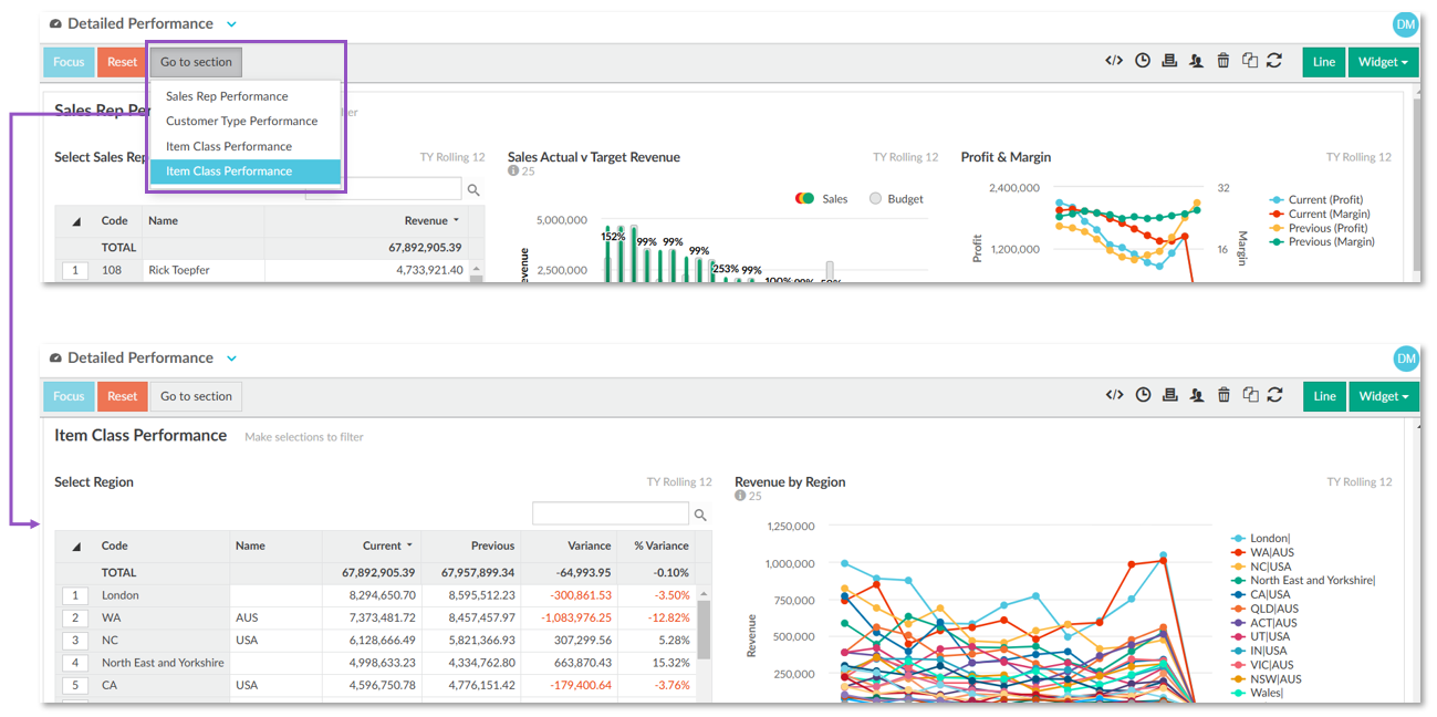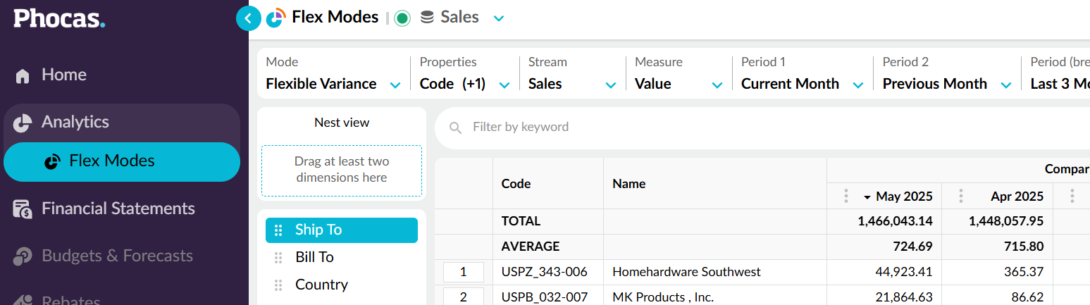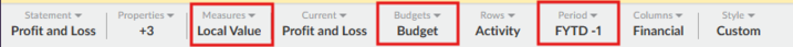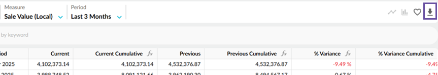The items you select from the menus, such as period and measure, are now retained when you switch between modes. This provides a more seamless experience and reduces the need to reconfigure your view each time you change modes.
