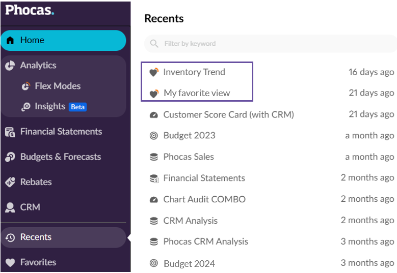 A new **Dashboards** subtab has been added to the Phocas homepage, making it faster to filter your homepage list to show only dashboards.