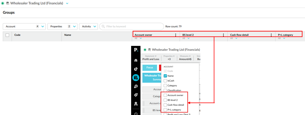 Groups enhancement: We added the account sub-dimension (group) names to the account properties.