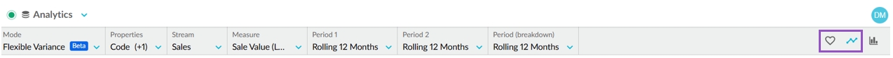 In Flexible Variance (Beta) mode, you can now add a chart to the Chart view tab. We also made the following changes to the toolbar: