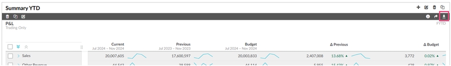 Users with the Export permission can now export financial statements directly from a dashboard.