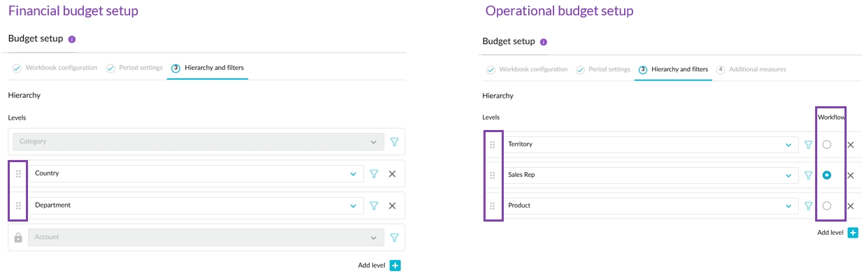 In operational budgets, you can now reorder all the levels and select the level at which you want to workflow to sit.