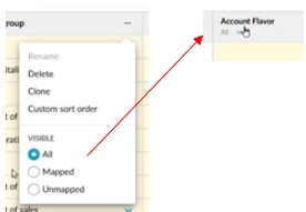 In the Groups window, we changed the way you filter items in the grid to make it easier for you to find and map items. We removed the Visible mapping filter options from the column header menu and replaced them with a filter below the column header label. When you open the new filter, you get a list of all available items and an additional item called (Unmapped). Like how you filter for blank cells in Microsoft Excel, when you select the (Unmapped) item, you get a list of all unmapped items (empty cells). It also has a search box you can use to filter the list of items by a keyword.